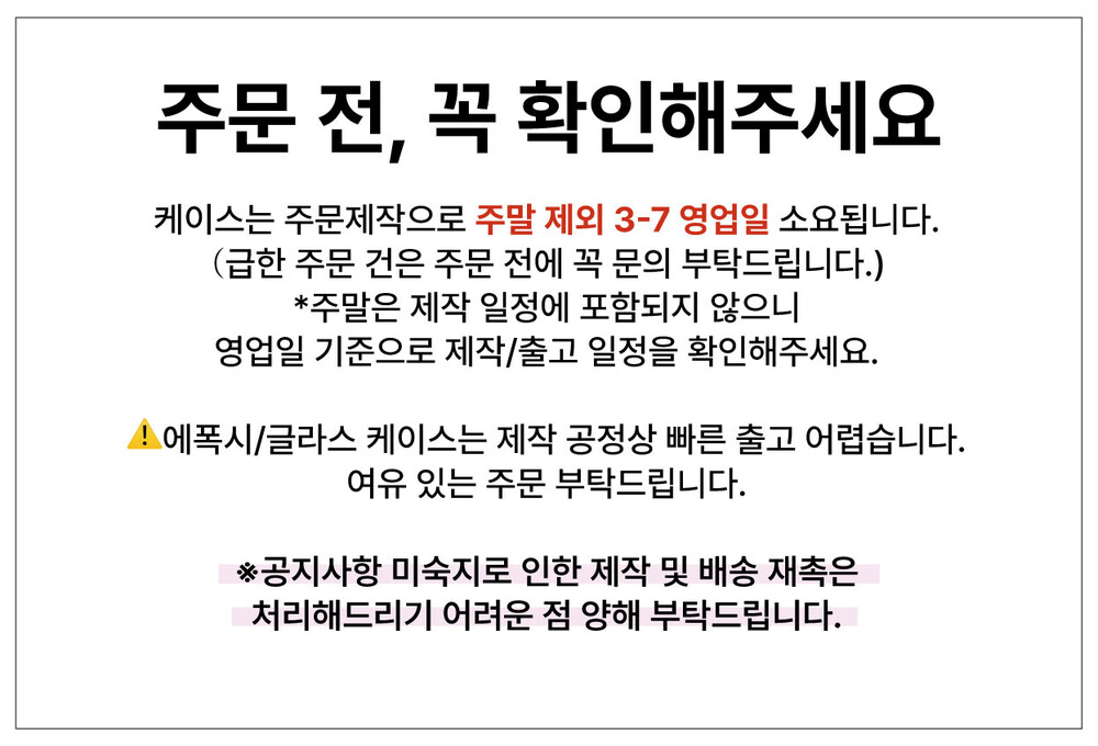 미세한 점, 먼지, 스크래치는 인쇄 공정상 생길 수 있는 부분으로 거래처에서 불량으로 인정하지 않습니다.